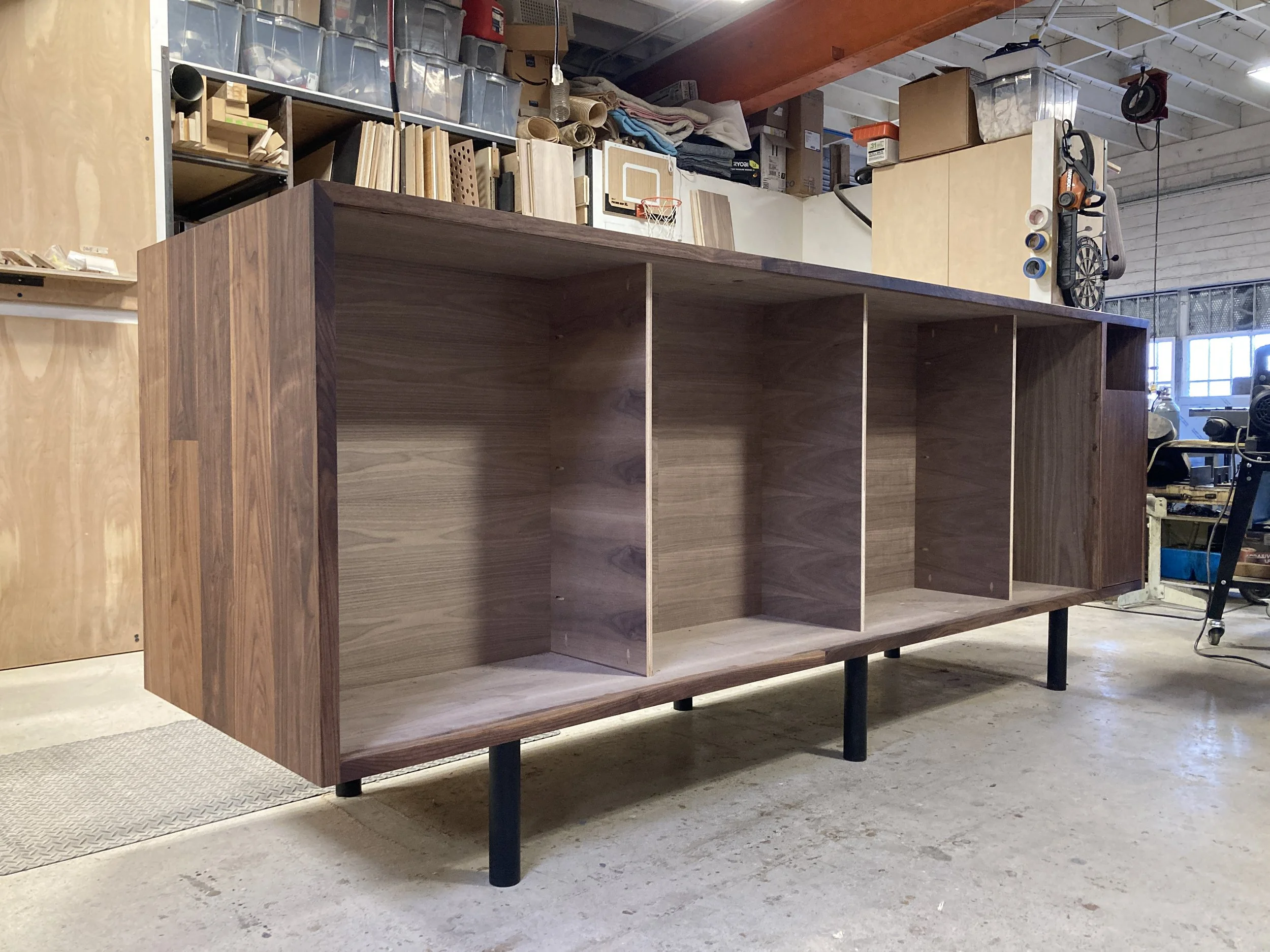 Walnut slab sourced from Ponderosa Millworks in West Oakland. Re-sawn veneer assistance from Joinery Structures in West Oakland.